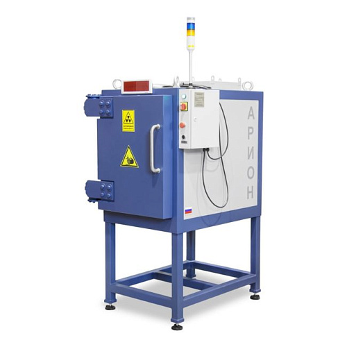 Камера радиационной защиты Арион-10.06.07.18 изготавливается в соответствии с ТУ 6968-014-96651179-2015 и предназначена для работы с рентгеновскими аппаратами постоянного тока кабельного типа с анодным напряжением до 225 кВ. Удобна в использовании при рентгенографическом контроле мелких деталей в условиях небольших лабораторий. Камера обеспечивает ослабление первичного и рассеянного излучения до безопасных значений в соответствии с действующими нормами. Дополнительная радиационная защита не требуется.